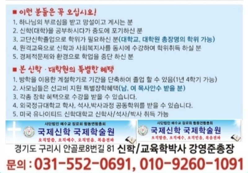 신학대학부/신학대학원/통신신학/사이버신학